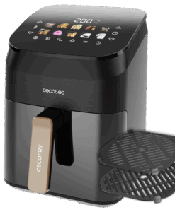 - Freidora de aire, grill y plancha. Diseño 3 en 1 que permite cocinar carnes con el punto perfecto, pizzas como masas esponjosas y todo tipo de recetas a tu gusto de la forma más saludable.