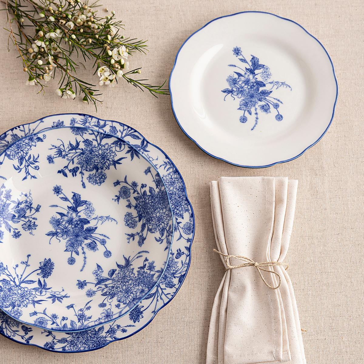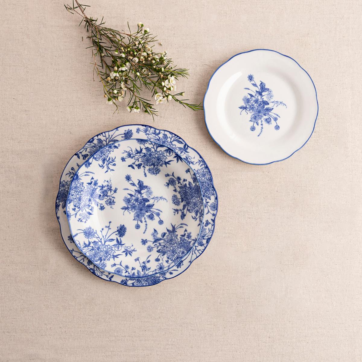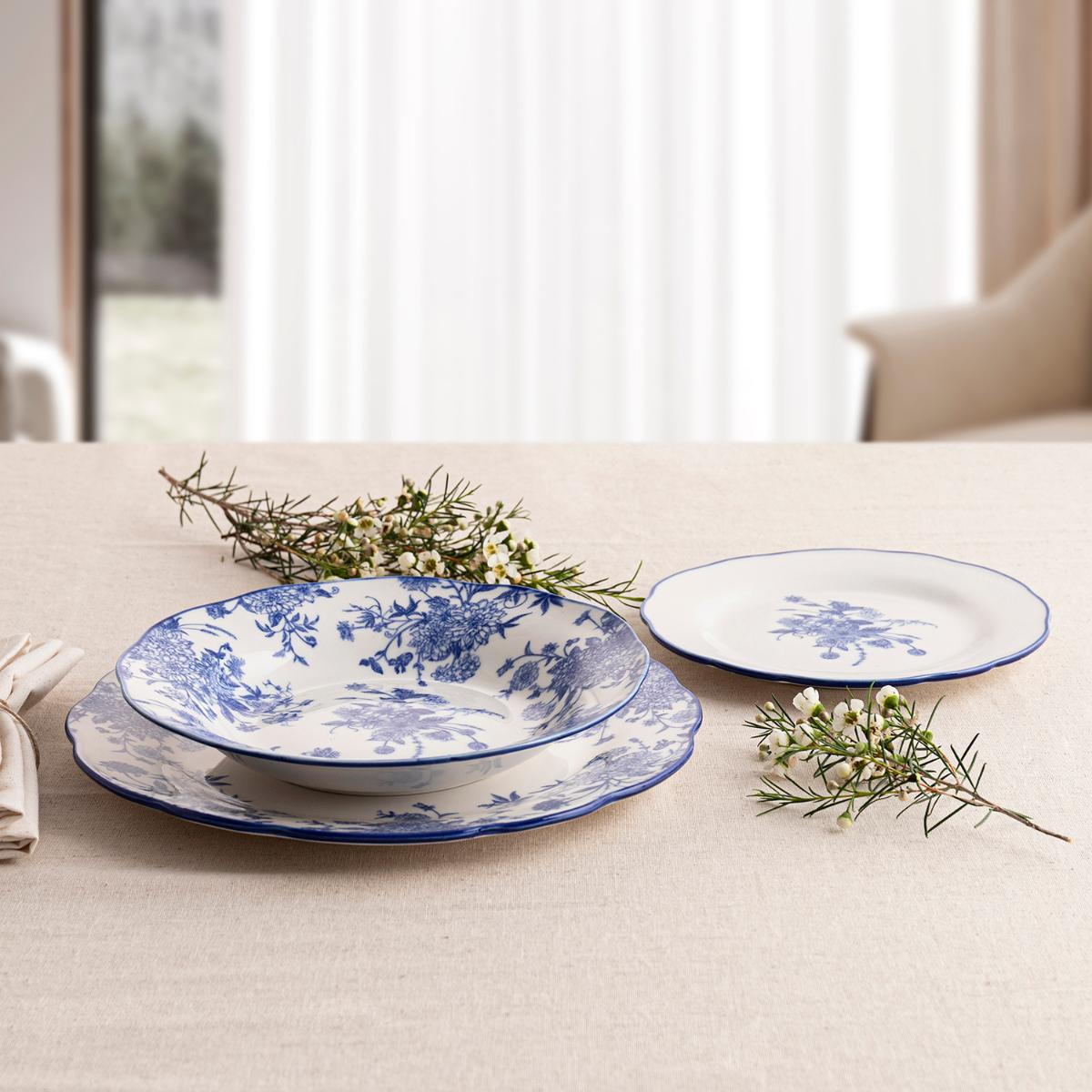 Vajilla 18 piezas porcelana blanca decorada azul Muriel La Bouchée