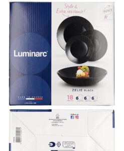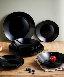 Vajilla Vidrio 18 Piezas – 6 Personas Luminarc Zelie Negro – Negro Apto Microondas Luminarc. Tipo De Material: Vidrio Negro Brillo. Rasgos Destacados: Fabricado En Francia , facil De Limpiar. Características Técnicas: Reciclable , apilable , ecológico , vidrio Templado Extra Resistente , material 100% Saludable , 100% Higiénico , extra Resistente , no Poroso , larga Duración. Consejos De Limpieza: Apto Lavavajillas. Instrucciones De Uso: Apto Microondas.6 Platos Llanos 25cm, 6 Platos Hondos 20cm Y 6 Platos Postre 18cm
